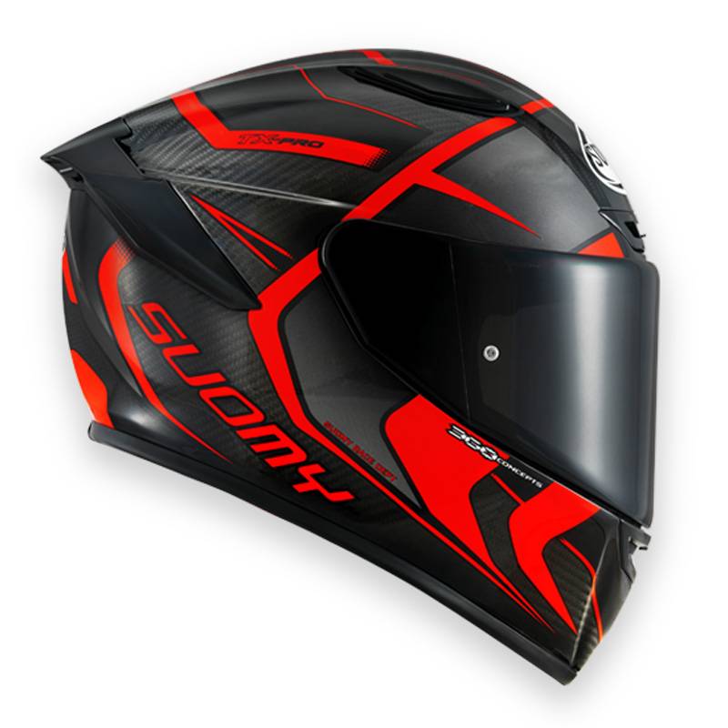 Suomy Tx-Pro karakterizira lagana, kompaktna ljuska izrađena od naprednih materijala poput karbonskih vlakana, što značajno smanjuje težinu, ali ne i otpornost na udarce. Aerodinamički oblik pruža optimalan protok zraka pri većim brzinama, što smanjuje opterećenje na vratu vozača, posebno na dugim vožnjama. Vizir je dizajniran za maksimalnu vidljivost i zaštitu, s premazom protiv ogrebotina i mogućnošću postavljanja Pinlock leće za sprečavanje magljenja.